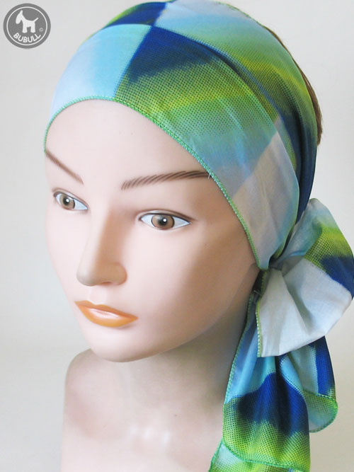 Bandana fin et léger en viscose . De couleur verte Il est doux,léger et souple donc très agréable à porter. idéal pour le printemps été ou mi-saison. Convient à l alopécie car TRÈS DOUX à l' intérieur, modèle non préformé et facile à mettre. Livré avec la vidéo de mise en place. Taille unique, réglable 54 - 6