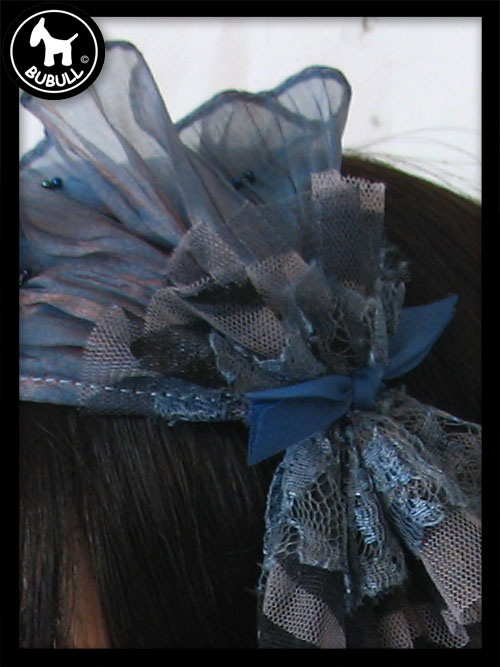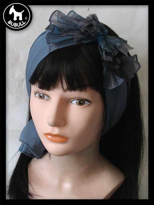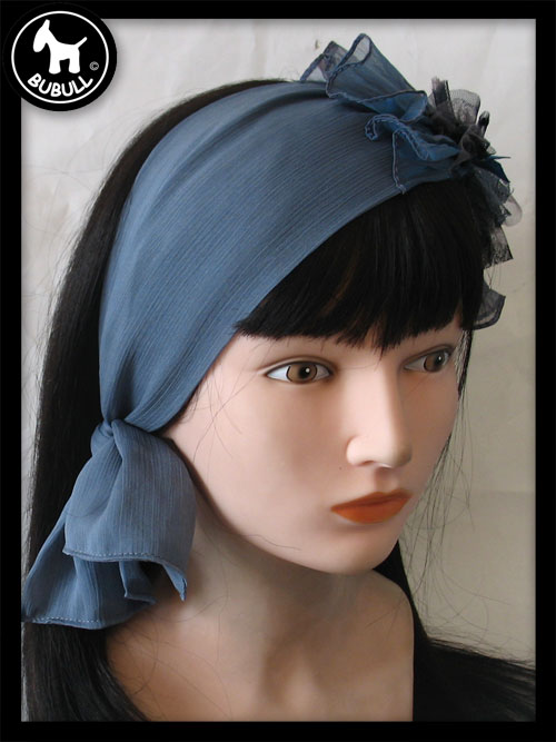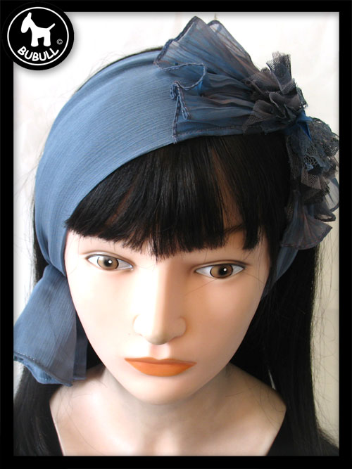 Long bandeau en voile bleu avec décoration + perles. idéal cérémonie. Taille unique 54 - 62. coupe très actuelle, belle qualité, léger.