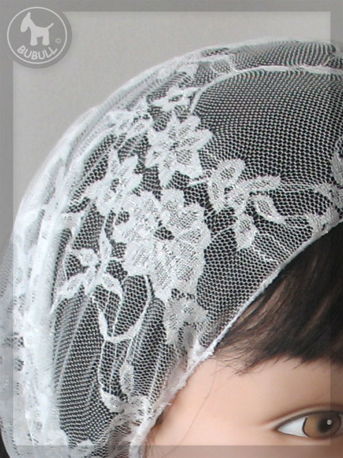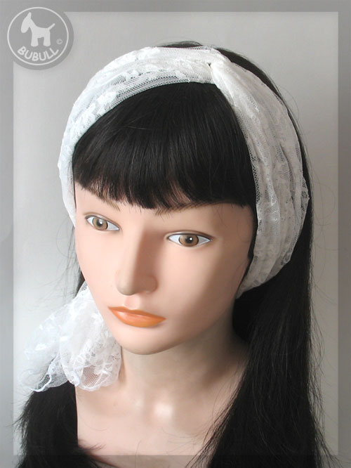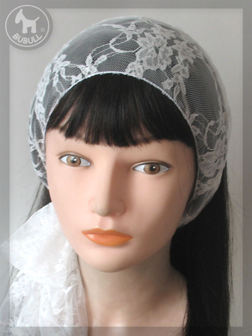 turban blanc cassé en dentelle, idéal cérémonie. Taille unique coupe très actuelle, belle qualité, léger.