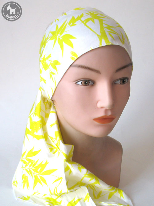 Long bandeau blanc cassé et jaune en coton mélangé.