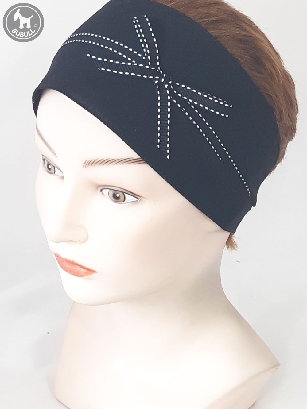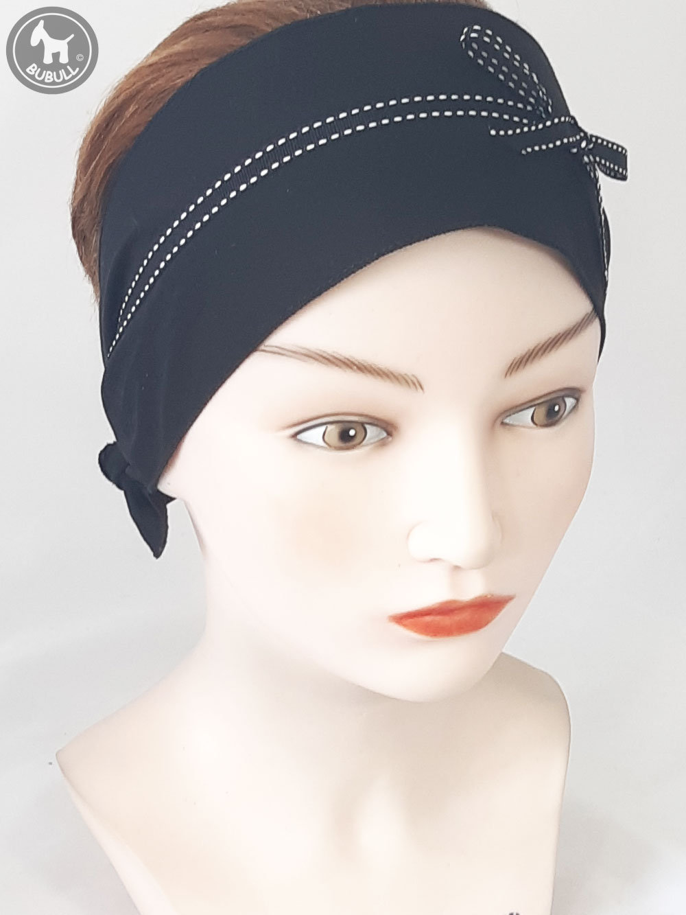 Modèle 100 % coton avec ruban et décoration nœud noir et blanc.