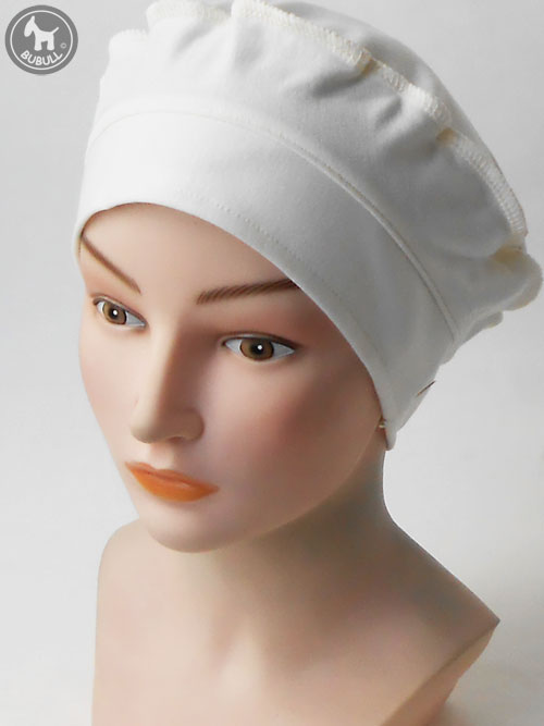 Disponible sur demande en version bonnet coton qui est plus proche de la tête que le béret ,et conseillé pour les petits tours de tête..à préciser lors de la commande.