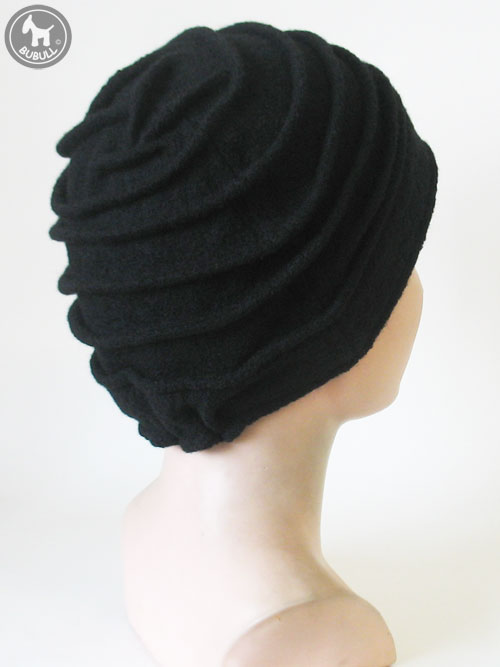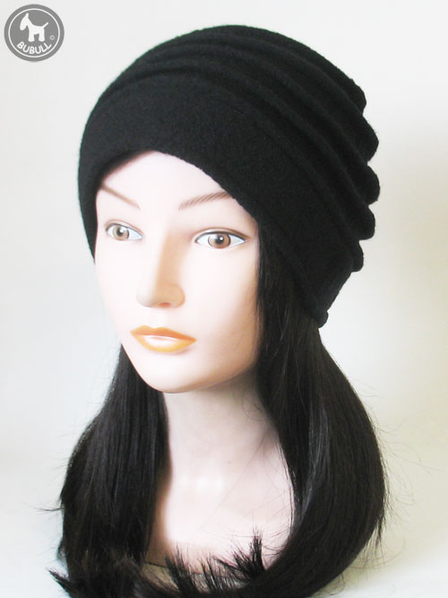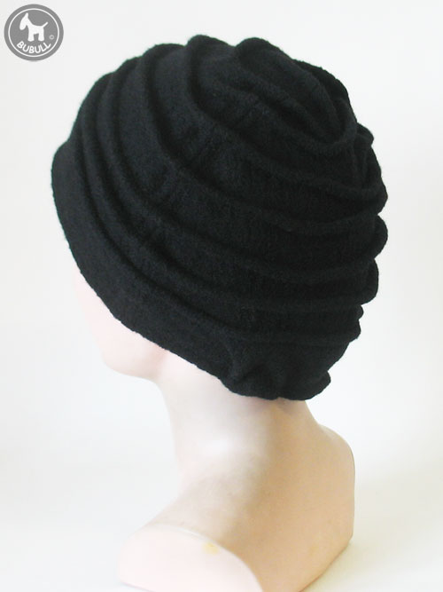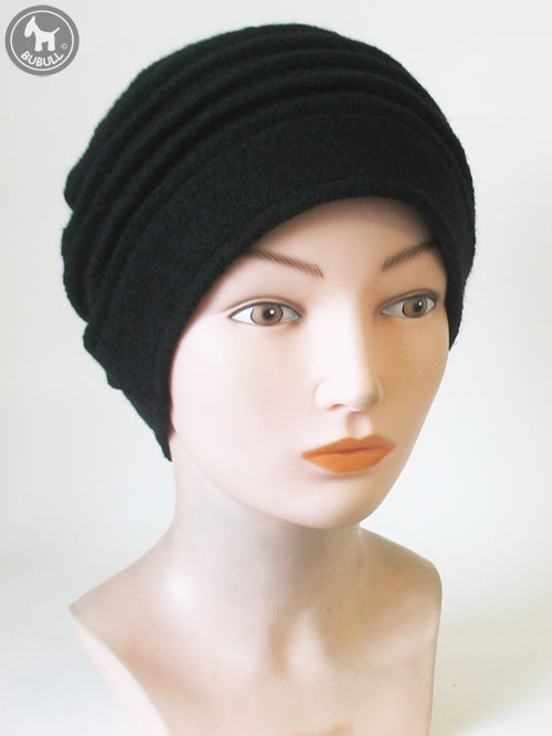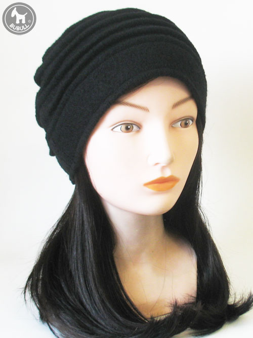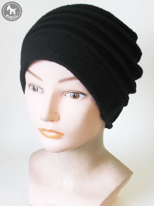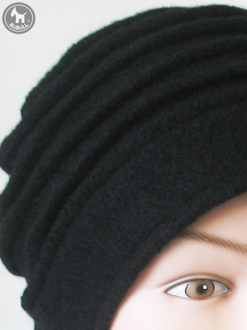 Bonnet noir en laine bouillie mélangée viscose.