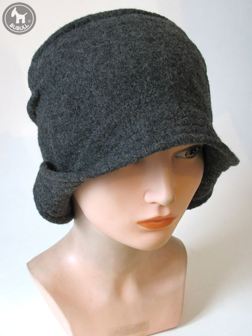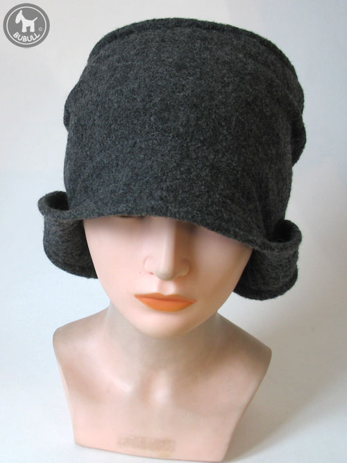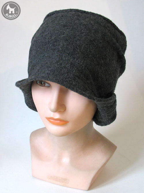 Chapeau en laine boullie souple et chaud, couleur gris .