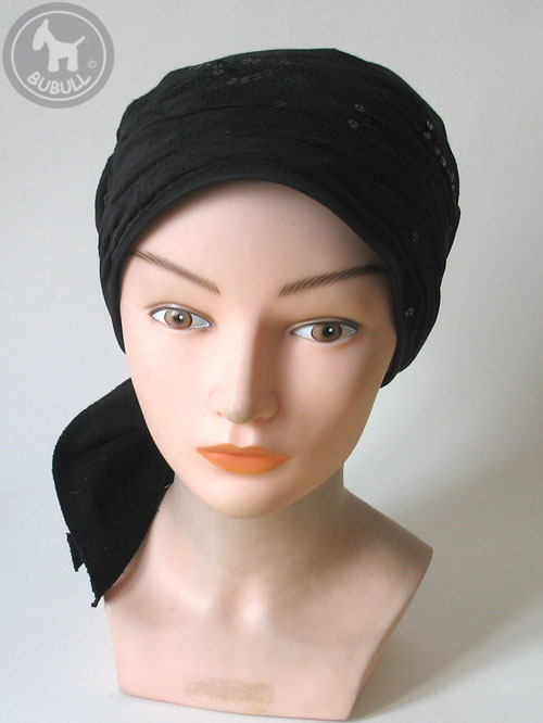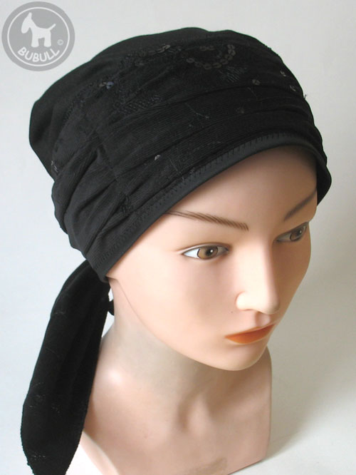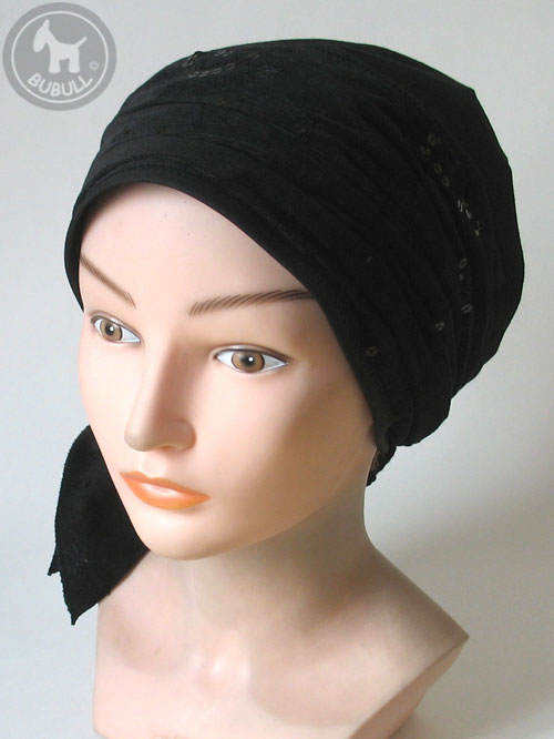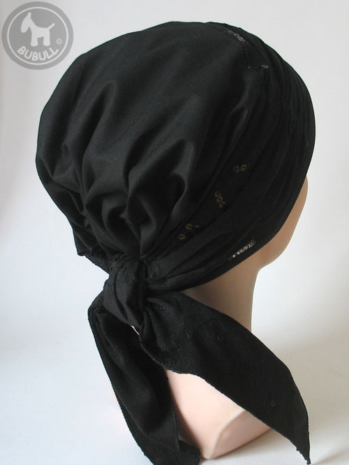 Foulard noir en velours coton strass, avec bandeau en velours coton