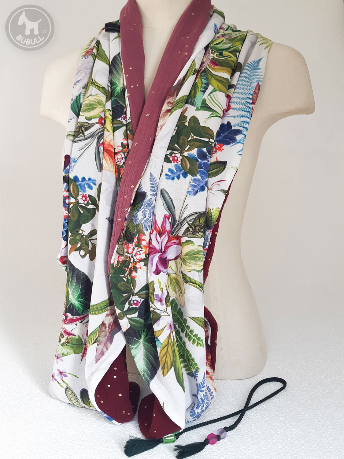 D’un côté un voile à motifs »plantes et fleurs »
