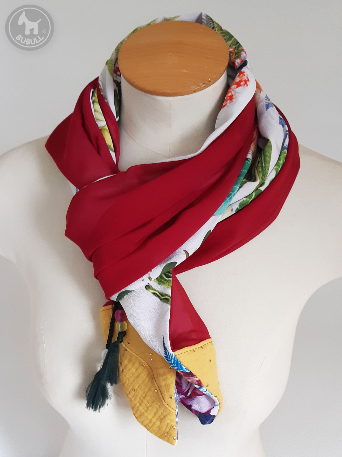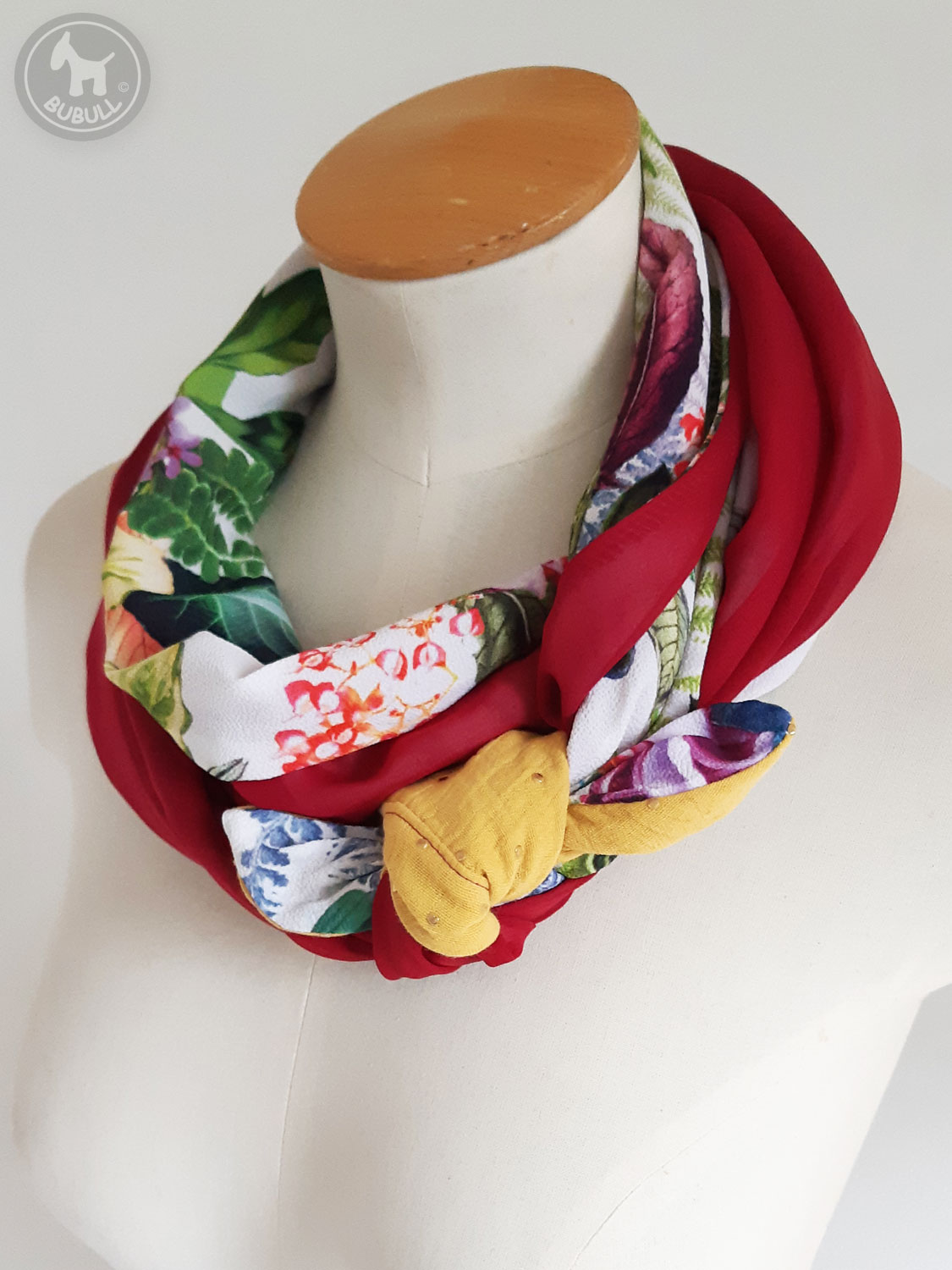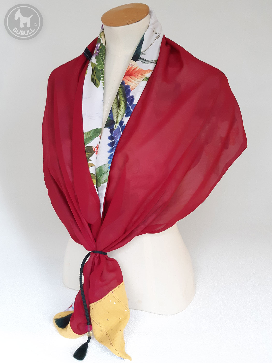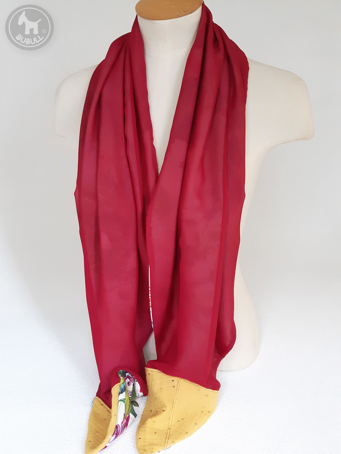 de l’autre un voile uni bordeaux.