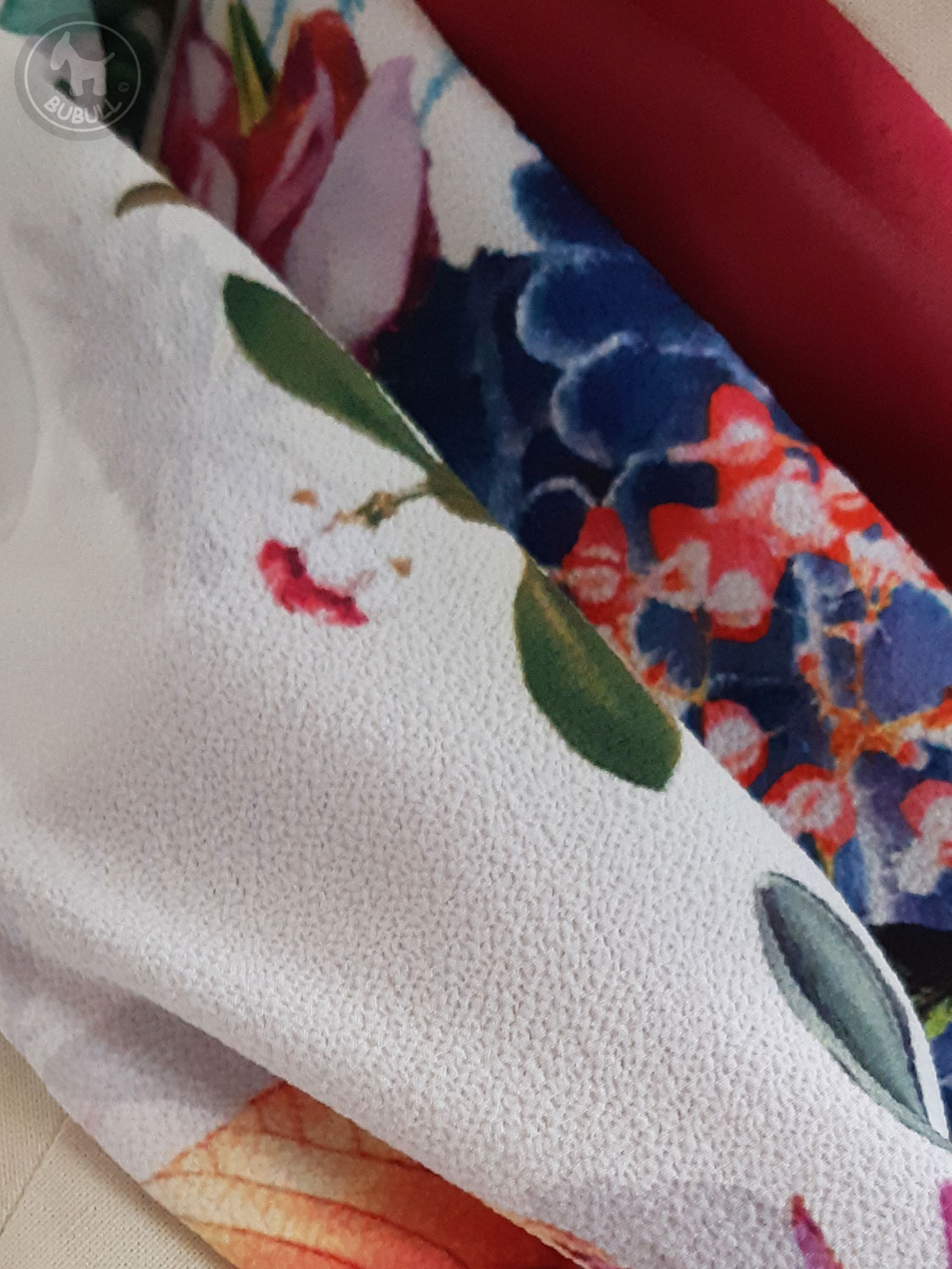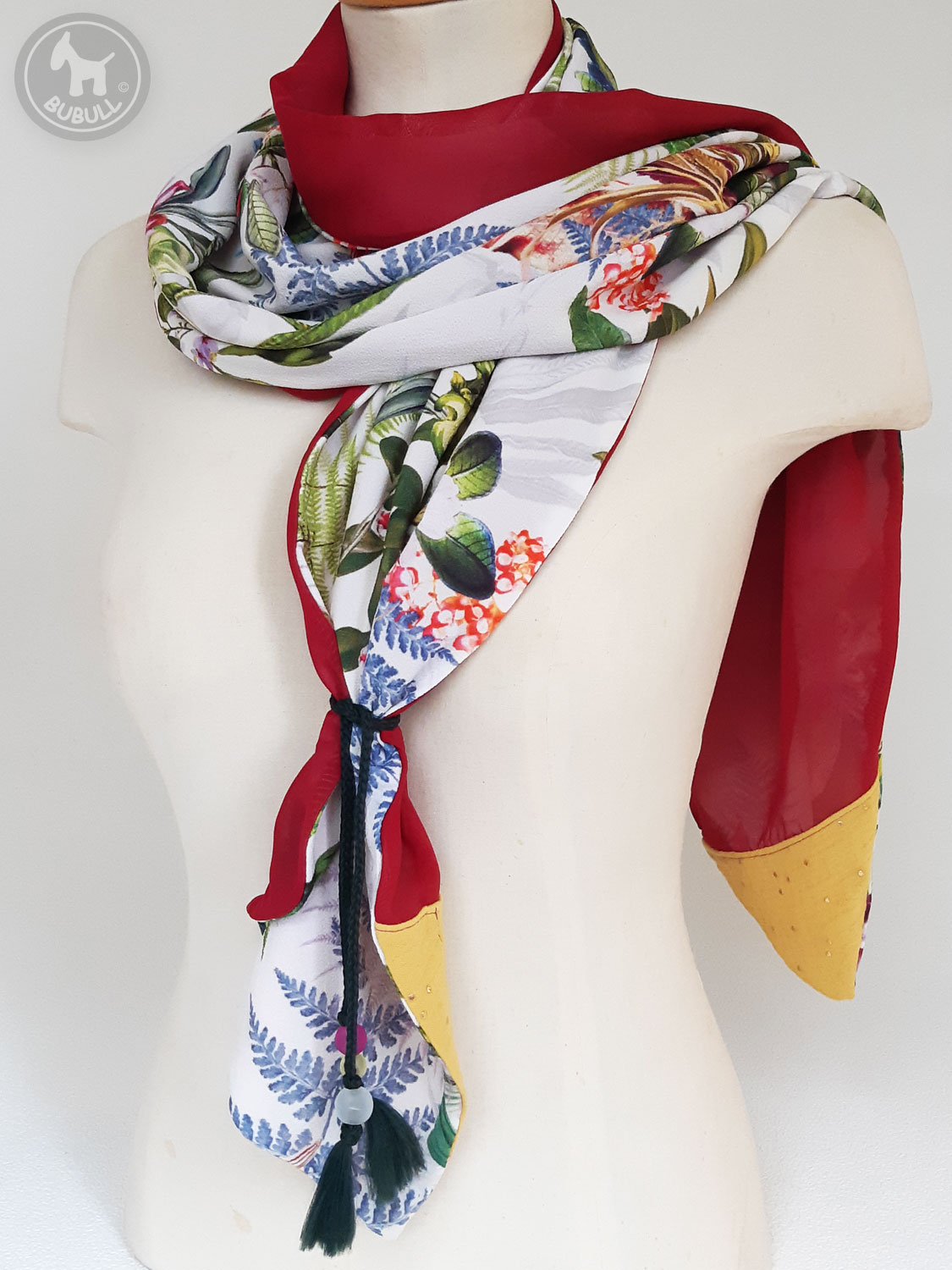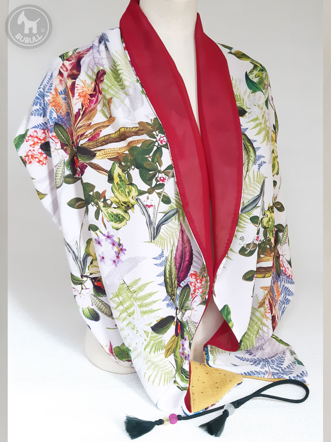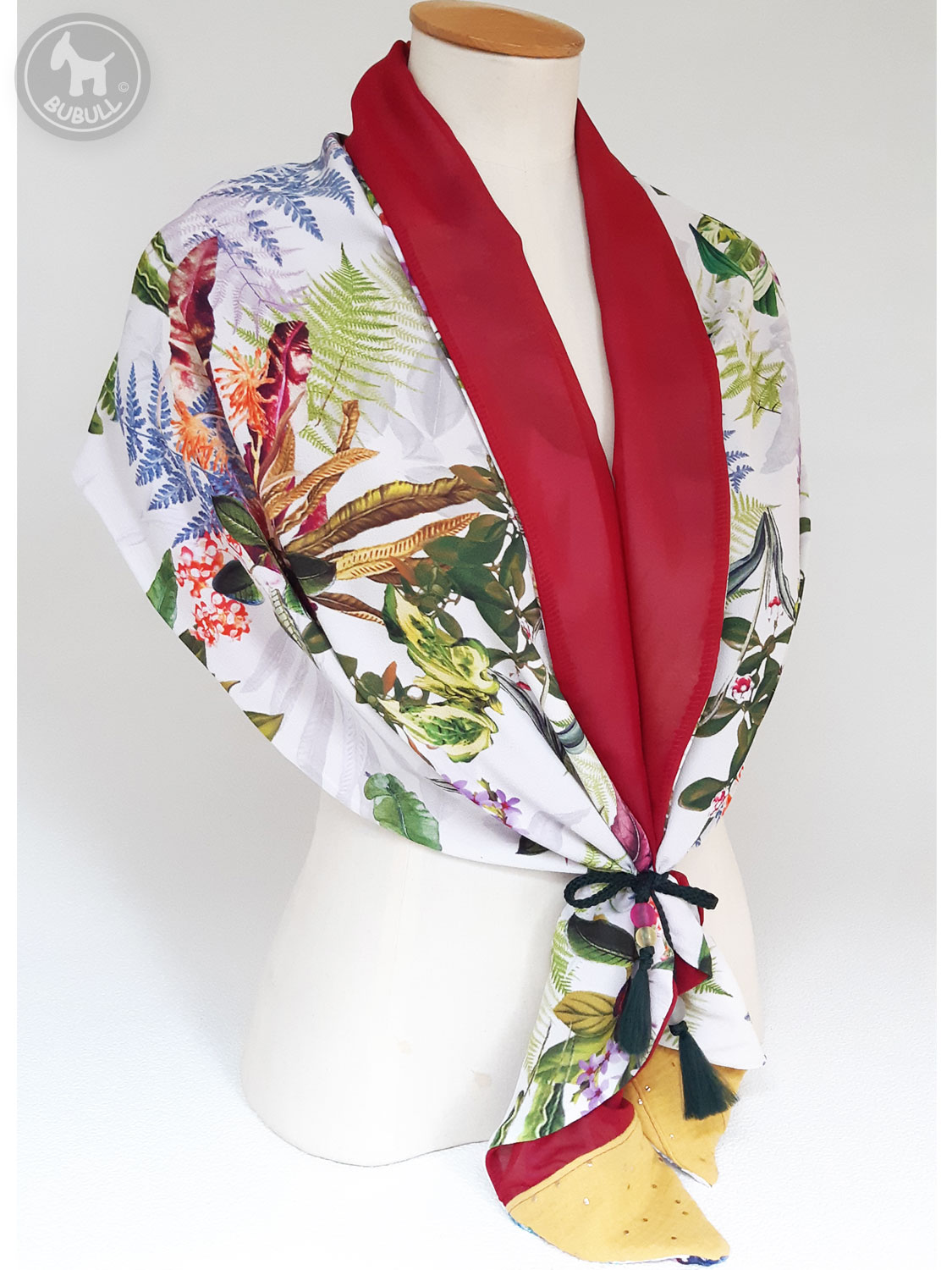 D’un côté un voile à motifs »plantes et fleurs »