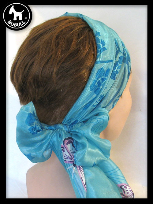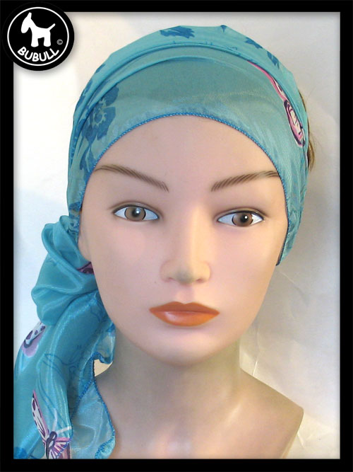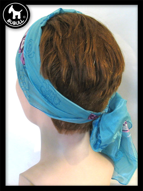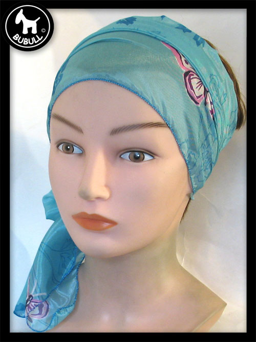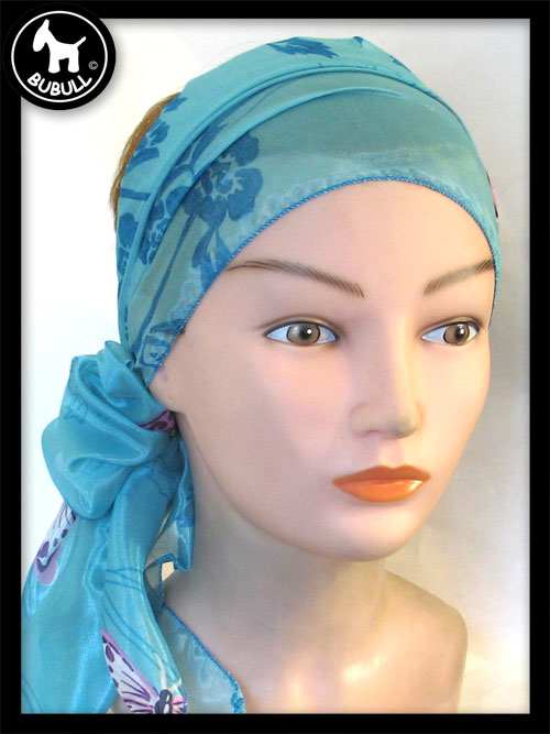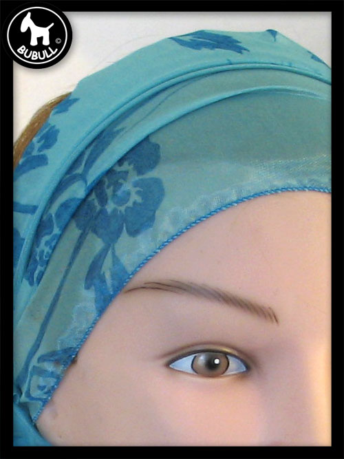 turban de couleur bleu matière synthétique. Convient pour toutes les tailles adultes. Léger et ajustable.