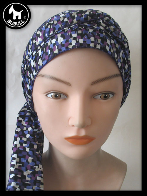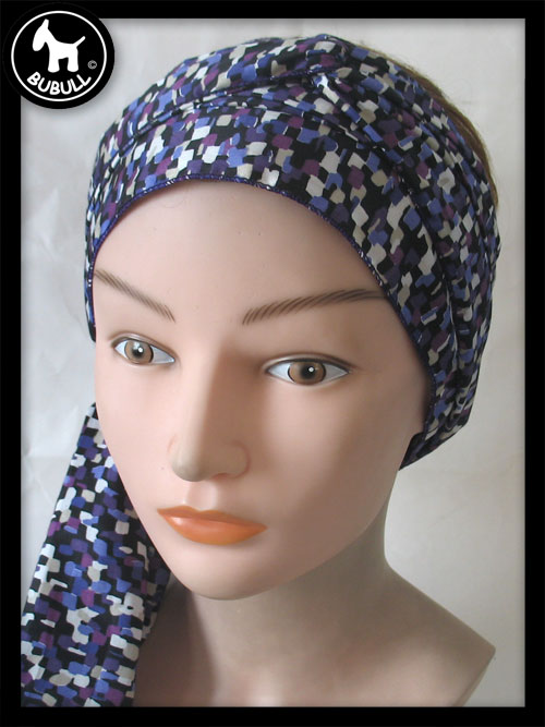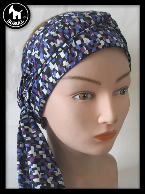 très long turban violet en coton fin. Convient pour toutes les tailles adultes. Léger et ajustable.