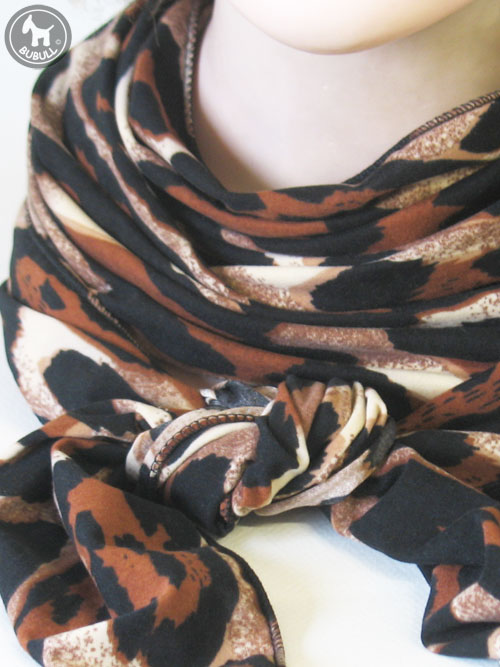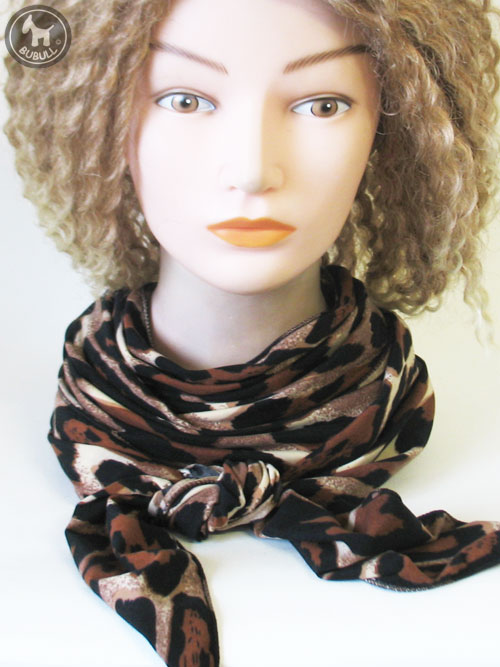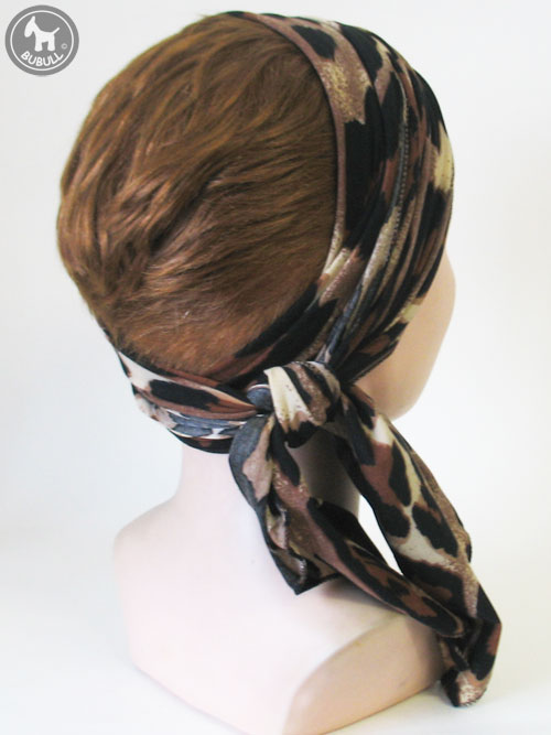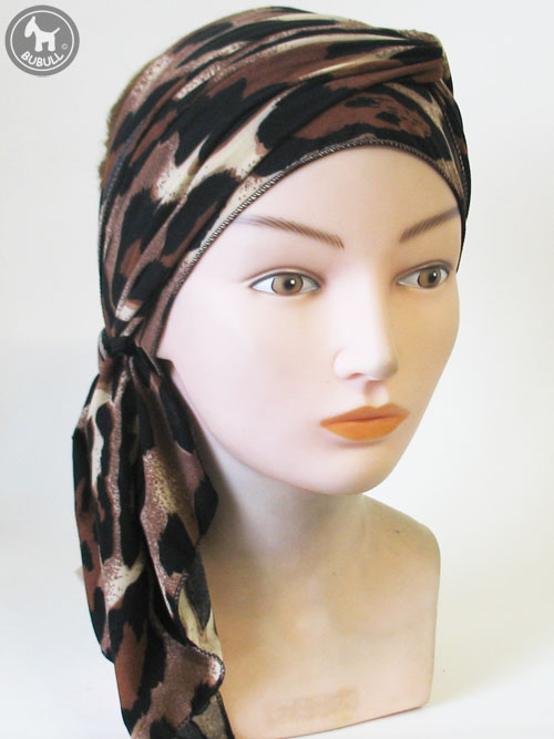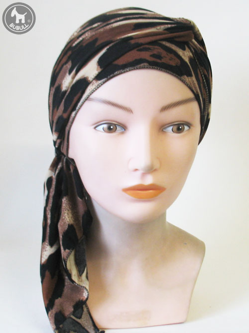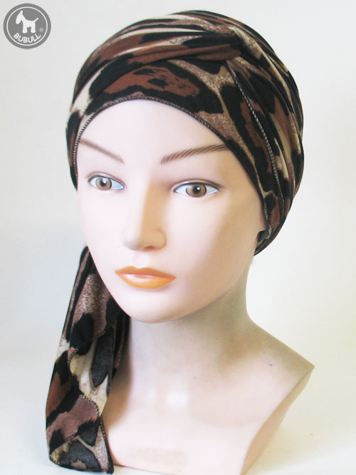 Long turban marron noir et beige en élasthanne :226 cm