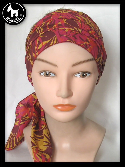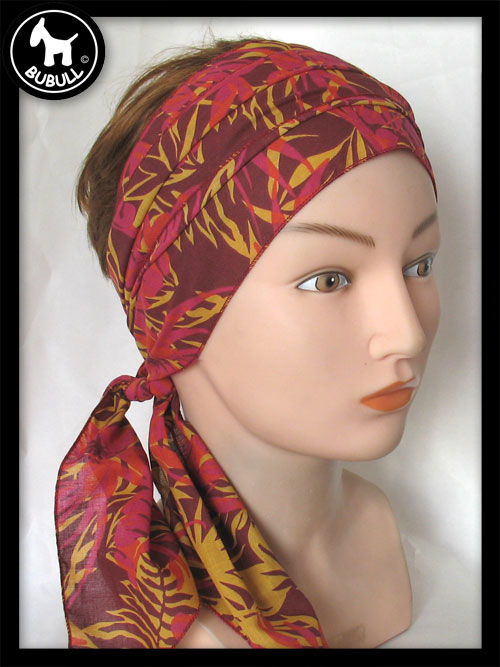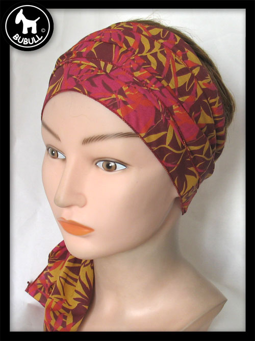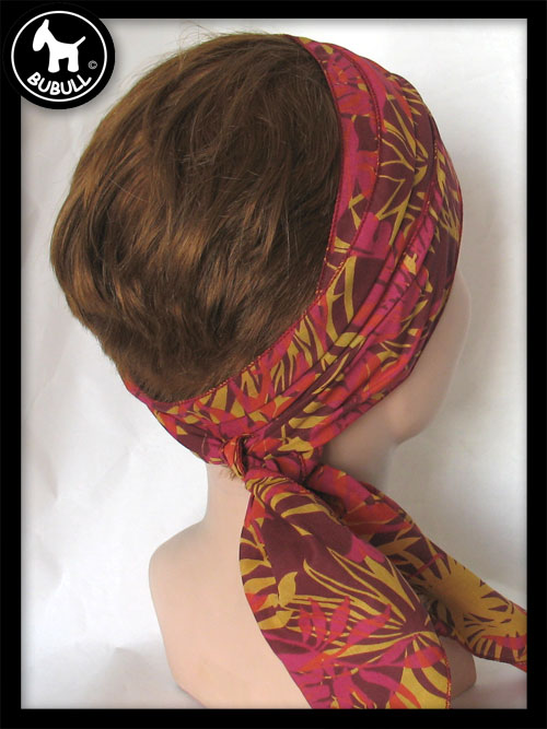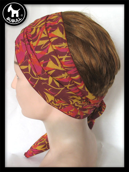 Bandeau turban en coton de de couleur bordeaux et couleurs.